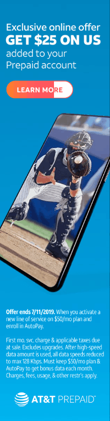 Banner with AT&T animation with the ad designed in a brand blue color.