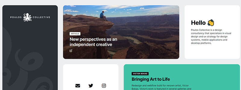 Poulos Collective delivers a very useful and aesthetically beautiful website by using Webflow’s powerful technology. This creative talent demonstrates their proficiency in producing smooth digital experiences that speak volumes about their technical and branding abilities.