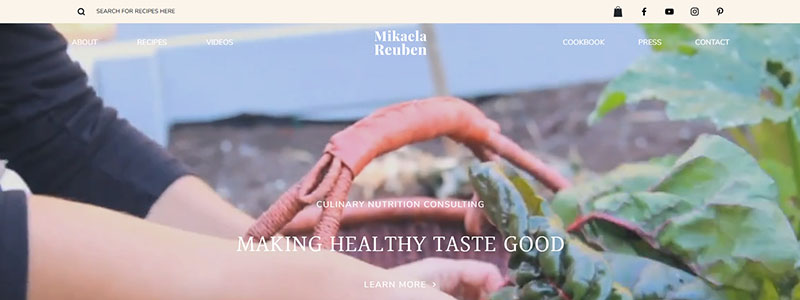 The website of Mikaela Reuben is a great illustration of contemporary web design that combines easy use with eye-catching appearance. Concentrating on encouraging healthy living with wholesome recipes and health advice, the website provides an engaging and enlightening user experience.