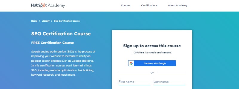 The SEO training is designed for novice optimizers, SEO marketers, copywriters, and website or blog owners. The HubSpot Academy’s SEO training consists of 6 video lessons with a total duration of 2.21 hours.