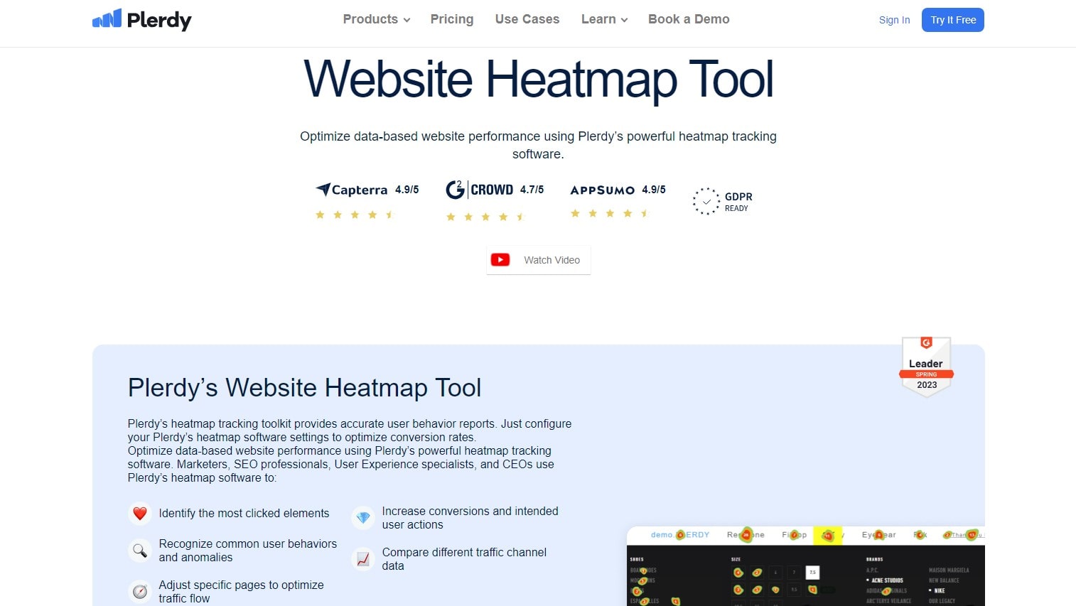 - Plerdy: Plerdy Heatmap testing in usability testing visually represents user interactions with website elements, offering data through click, scroll, and cursor movement tracking