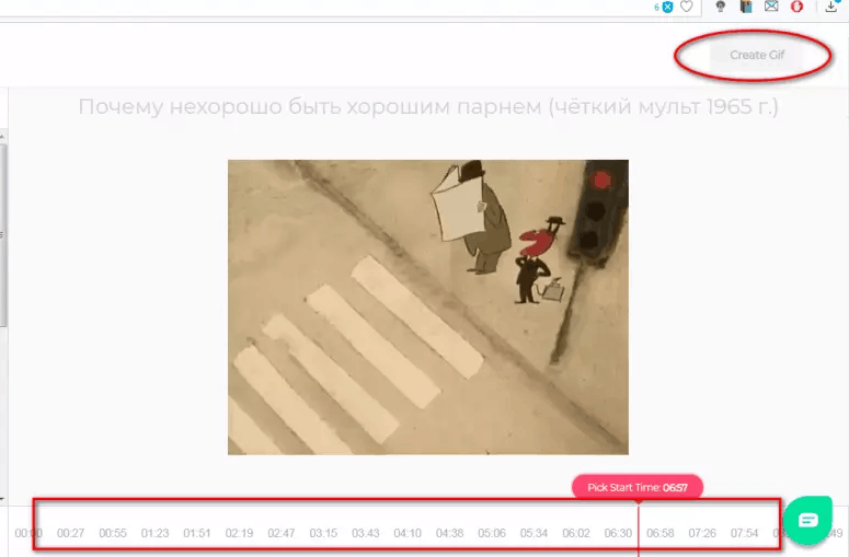 Если вы делаете анимацию из видео, все осуществляется идентичным образом, достаточно только выбрать пункт в шапке на сайте. Внизу видео будут расположены две временные шкалы, с помощью которых можно отметить начало и конец видео.