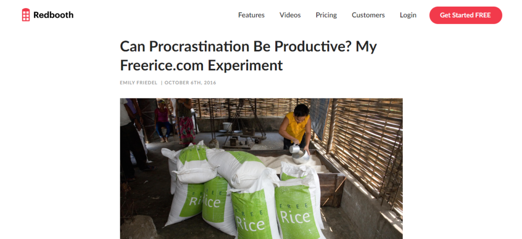 Хороший пример поста такого типа — исследование Redbooth на тему влияния прокрастинации на продуктивность труда.