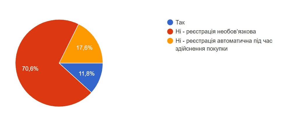 Несмотря на то, что большинство интернет-магазинов не допускает ошибку, делая регистрацию обязательной для совершения покупки, 12% участников опроса имеют такой недостаток.